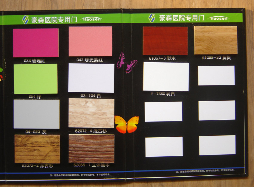 产品特点:豪森医院专用门为国内知名品牌,豪森医院专用门生产厂家自助研发品牌,豪森医院专用门饰面为防火抗菌板,内衬蜂窝雀巢阻燃网格高密度板,豪森医院专用门分为两大系列:防火抗菌板门及CPL防火板门,下面着重为大家介绍一下豪森两大系列医院门的特点: 豪森木门医院专用门产品特点 结构:门板双面为豪森抗菌板,内衬蜂窝穴巢网格高密度板或其它环保不燃材料。 种类:防火抗菌板门。 ◎防火抗菌板门(含单开门、子母门、双开门)有/防火、抗菌、硬度高等优点: 1、门扇厚度高达40mm,具备卓越的隔音、隔热性能; 2、表面处理为防火抗菌